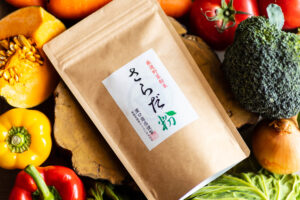 厳選した数種類の野菜と丁寧に火入れした香味野菜を組み合わせて、素材本来の栄養と旨みにこだわった野菜粉末などを販売します。